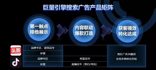 基于自(zì)身(shēn)強大(dà)的(de)流量價值與♦®發展潛力,巨量引擎為(wèi)廣告主打造了(le)包 ₩括品牌專區(qū)、超級品專、搜索彩蛋、明(míng)∞÷≥↑星品專、直播品專、搜索競價等多(duō)元化(huà)搜索×"↕營銷産品,通(tōng)過全場(chǎng)景品牌占位,促成流量到↑δλ(dào)效果的(de)高(gāo)效轉化(huà)。